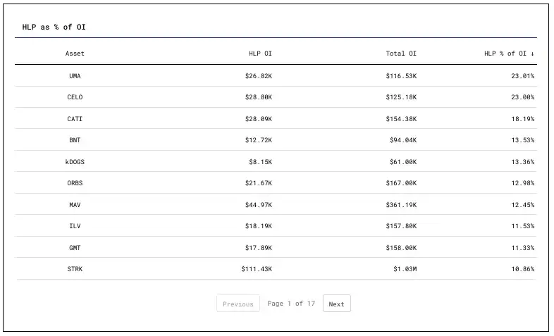 · 跟踪 HLP 占各资产总未平仓合约的比例能帮助我们发现易**纵的资产。