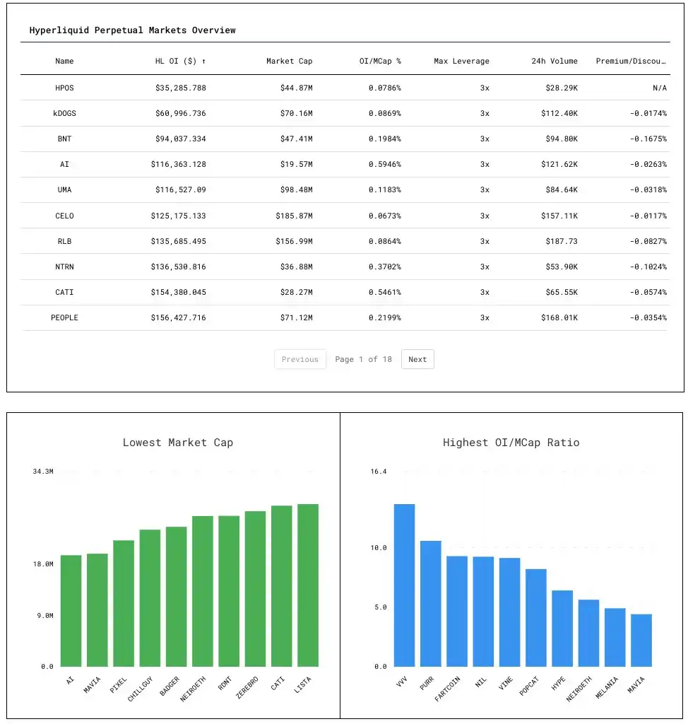此表提供 Hyperliquid 上永续期货市场的指标概览: