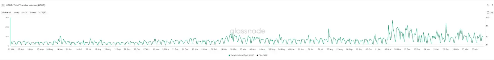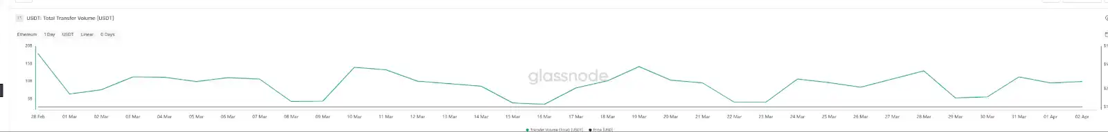 此外,从单日的交易频次来看,以太坊上的 USDT **峰的单日转账次数不超过 30 万次,且通常周末的转账频次和转账平均金额都远低于工作日。也进一步印证上述的推断。