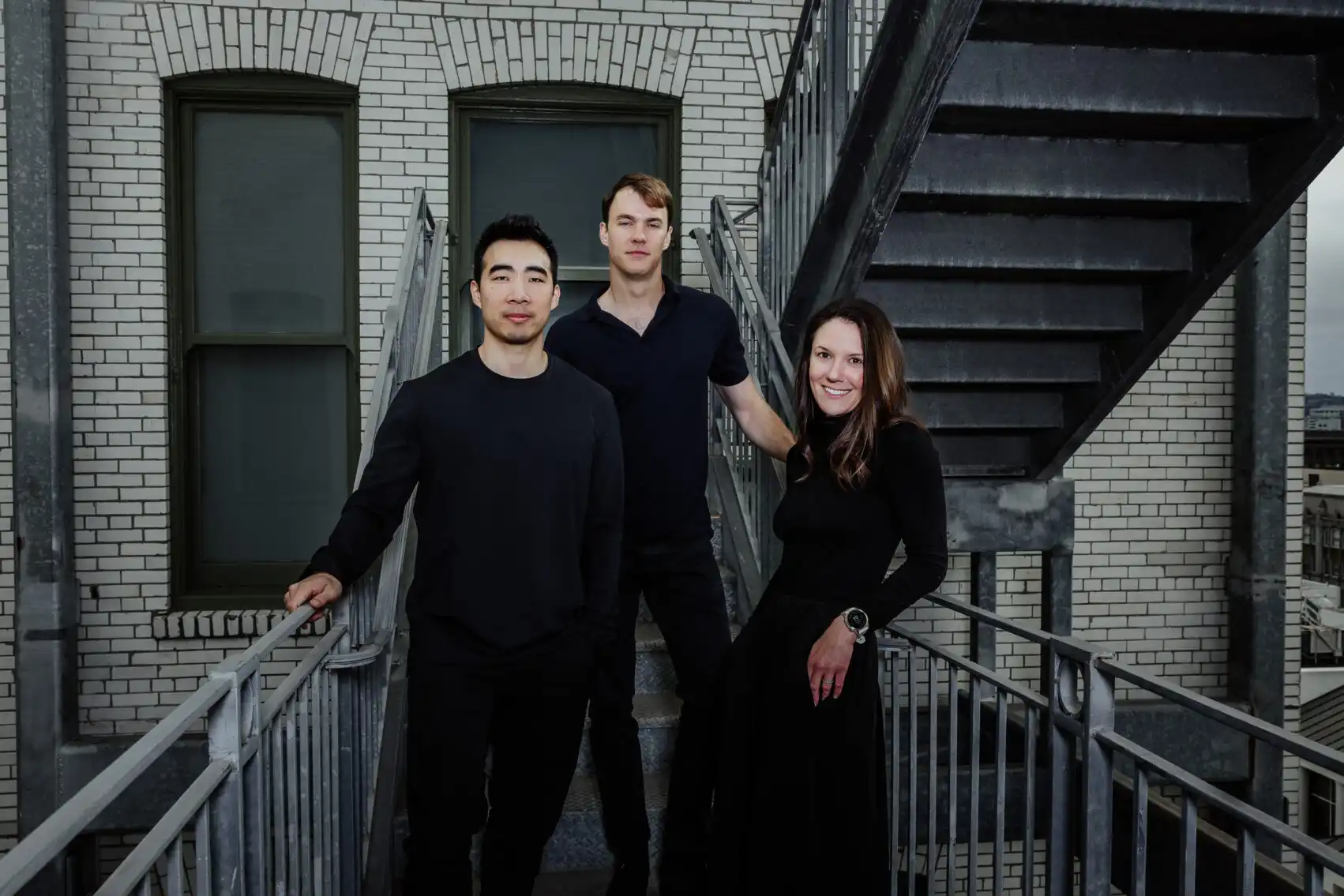 Huang、埃尔萨姆和帕尔梅多在旧金山办公室顶层外的合影