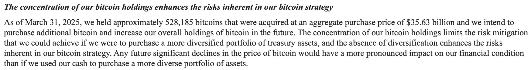 Strategy 的比特币策略曾是其股价飙升的引擎,但如今却成为悬在头顶的达摩克利斯之剑。SEC 文件明确指出,比特币占公司资产负债表的「绝大部分」,其价格波动直接决定公司的融资能力和债务偿还前景。一旦某些关键因素失控,抛售比特币可能成为不得不面对的现实。