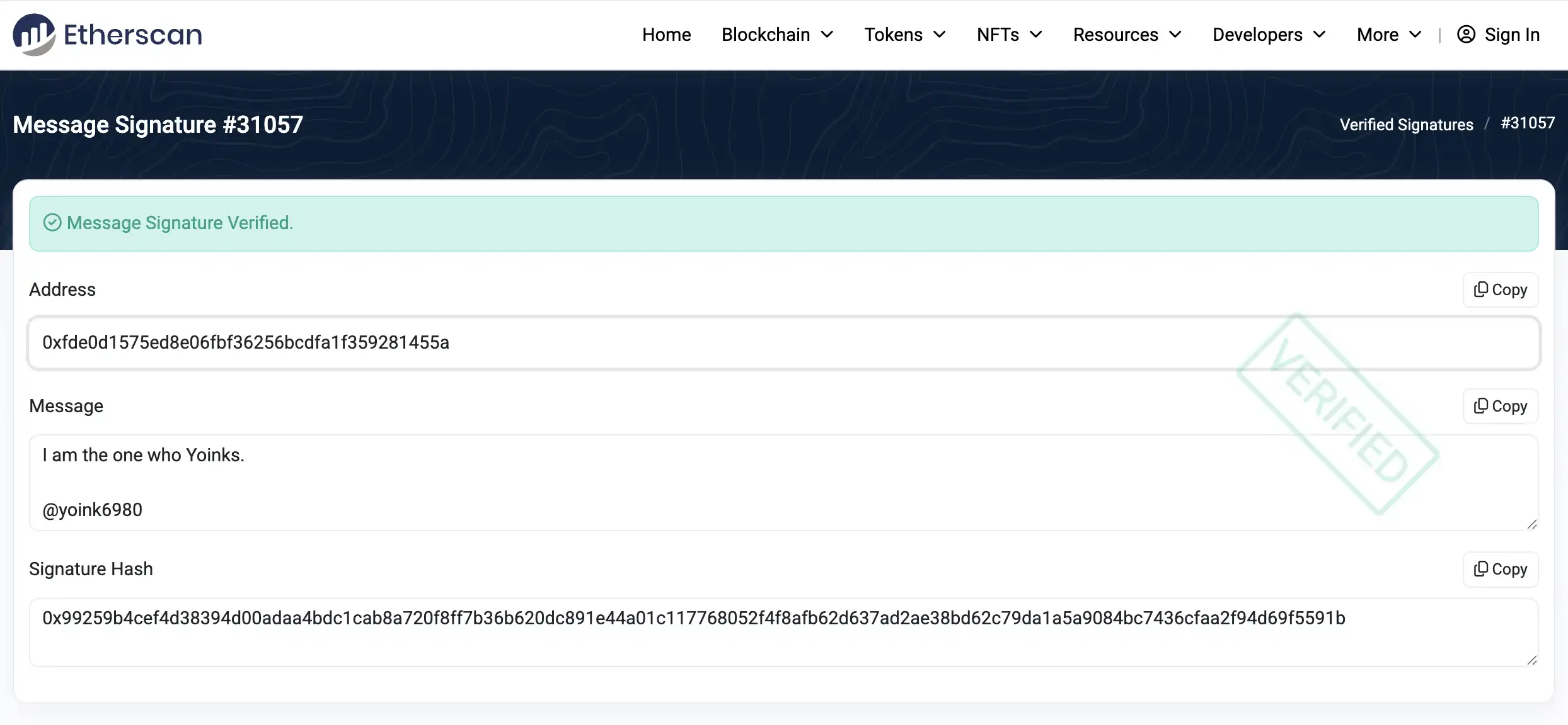 现在被 EtherScan 认证的MEV Frontrunner Yoink地址绑定了一个社交媒体 X 的账号 yoink6980,此前是 yoink6980 为了告知社区自己抢跑了 ERC-2771 协议中一个漏洞的真实攻击者,拯救了社区的资金所创立,比如在 2022 年 12 月他拯救了 DFX Finance 的资金,并归还给用户。