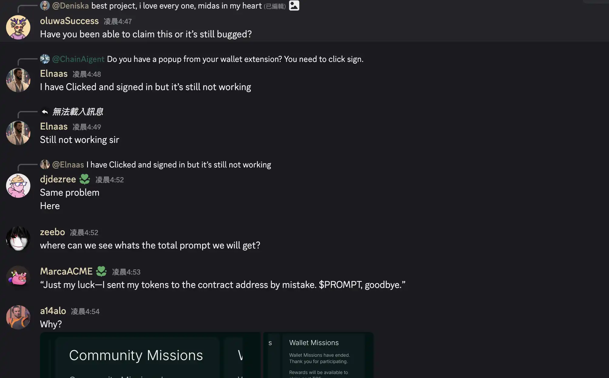 KAITO 与 Wayfinder 的空投活动计划共分发 500 万枚**给 Yapper,其中 Yap 超过 90 分的分配 400 万,而小于 90 分大于 0 分的分配 100 万枚。随着活动的开放,Yapper 开始 Claim 自己的**。但问题也随之而来,许多用户在 Discord 频道中表示,自己进行了交互后没有收到**,却显示自己的**已经被领取。