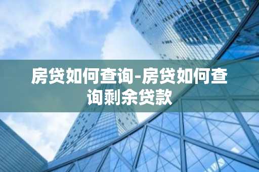 房贷如何查询-房贷如何查询剩余贷款
