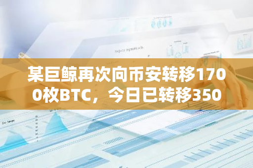 某巨鲸再次向币安转移1700枚BTC,今日已转移3500枚BTC