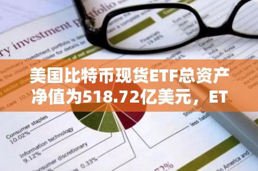美国比特币现货ETF总资产净值为518.72亿美元,ETF净资产比率达4.41%