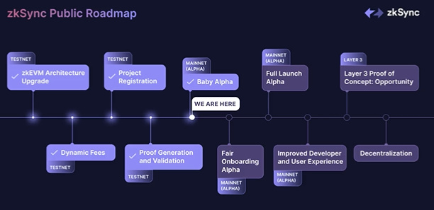 根据 zkSync 官方披露的路线图,**阶段后的下一阶段为 Fair Onboarding Alpha,开发者能够移植到 zkSync 并开始在网络上构建应用。当前,包括 Uniswap 在内的超 100 家项目已表态有意在 zkSync 2.0 上部署其应用程序。再往后的阶段是 Full Launch Alpha,届时网络对所有人**开放,预计这将发生在年底左右。