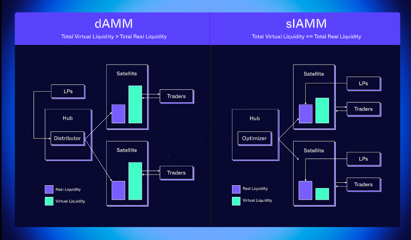 基于跨链底层、中间件等,在应用层流动性上面可以有更多创新的设计。例如近期提出的 slAMM[11](共享流动性的 AMM),通过 Hub 链来协调各个「卫星链」上的流动性。其中,可以基于跨链协议来实现在各个链上的流动性移动、结算等等管理功能。