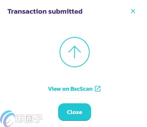 7、确认交易之后,耐心等待几秒钟,会弹出一个窗口,可以选择“ViewonBsccan(在BSC区块浏览器上查看交易信息)”或者“Close”返回。
