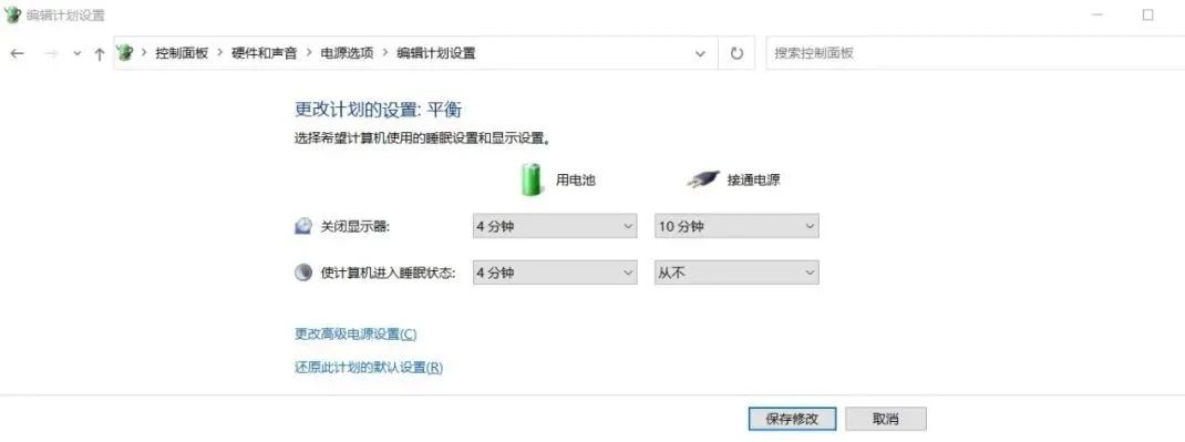 在电源选项里设置接通电源时——使计算机进入睡眠状态:从不,以防止机器进入自动休眠。台式机则是把“关闭显示器时间”设置为“从不”,再点击“保存修改”,这样电脑就不会自动休眠,保证算力平稳。