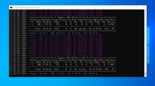 这里演示的电脑是一台配有3070显卡的笔记本,算力在大约在50Mhash/s。
