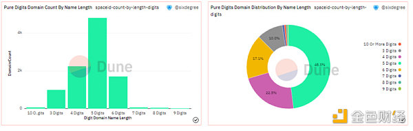 因此,我们可以做出以下总结:5 位数纯数字域名目前占据主导地位,有非常多的用户注册了 5 位数纯数字域名。也许在未来,随着更多用户涌入 SPACE ID,5 位数纯数字域名将更加供不应求。
