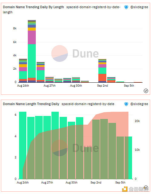 域名注册数据方面,我们发现 SPACE ID 域名注册呈现字段长度缩短的明显趋势。