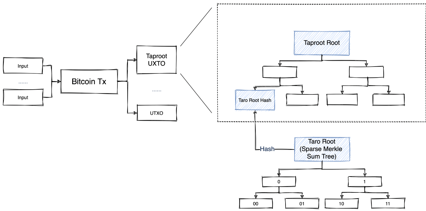 与Omnilayer和RGB一样,Taro在BTC链上发行资产的方式也是把资产交易元数据放到UTXO输出里面,不过Taro使用了新增的Taproot交易类型来实现这一切,因此应该更加地**,隐私保护也更好。