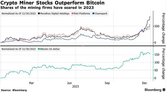 总的来看,从历史经验来看,减半后极有可能开启一轮新的牛市周期,如今的体量或许较难在实现 10 倍以上的涨幅,但超越上轮牛市高点的 6 万美元还是相当值得期待。此外值得注意的是,每次比特币减半前,上市矿企也都是**的「自带杠杆」关联标的:上市矿企中目前在纳斯达克和多伦多证券交易所上市的矿商有 15 家,其中作为龙头的 MARA 已连续 11 个交易日上涨,涨幅超 100%,今年总涨幅超 800%,Riot 今年涨幅也超 400%,而比特币同期涨幅只有约 160%。