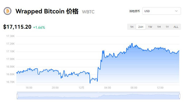 WBTC币今日价格为17115.20美元,折合人民币约为120874.3885元,24 小时交易额为 $2,666,831.32。Wrapped Bitcoin的价格在过去 24 小时内上涨了 1.63%。我们会实时更新 WBTC/USD 的价格。目前,该币种市值排名为第 22 名,实时市值为 $3,669,672,935.00。其流通供应量为 214,745 WBTC,总供应量为 214,745 WBTC。