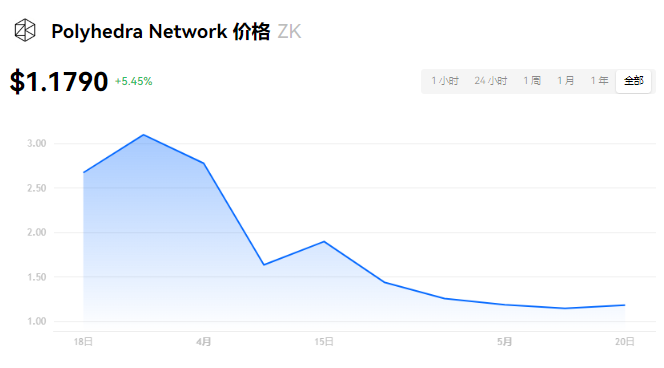 Polyhedra Network 当前价格为 $1.1790。Polyhedra Network 的价格在过去 24 小时内上涨了 5.46%。目前,Polyhedra Network 市值排名为第 0 名,实时市值为 $0.00,流通供应量为 0 ZK,**供应量为 0 ZK。我们会实时更新 Polyhedra Network/USD 的价格。Polyhedra Network 价格表现 (美元)