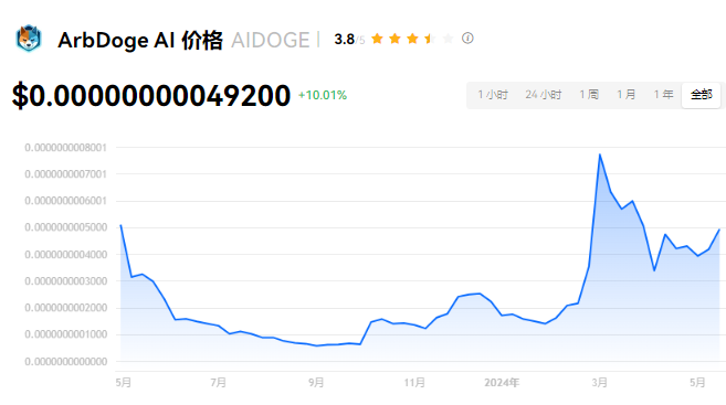 自2023年2月上线以来,AIDOGE币经历了较大的市场波动。其价格一度飙升至0.000008美元的高点,但随后回调至0.000003美元左右。截至目前,AIDOGE币的市值约为3000万美元。