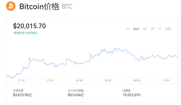 截止北京时间2022年6月20日15时,比特币**价格为每枚20015.7美元,换算**民币价格为133782.94元每枚。