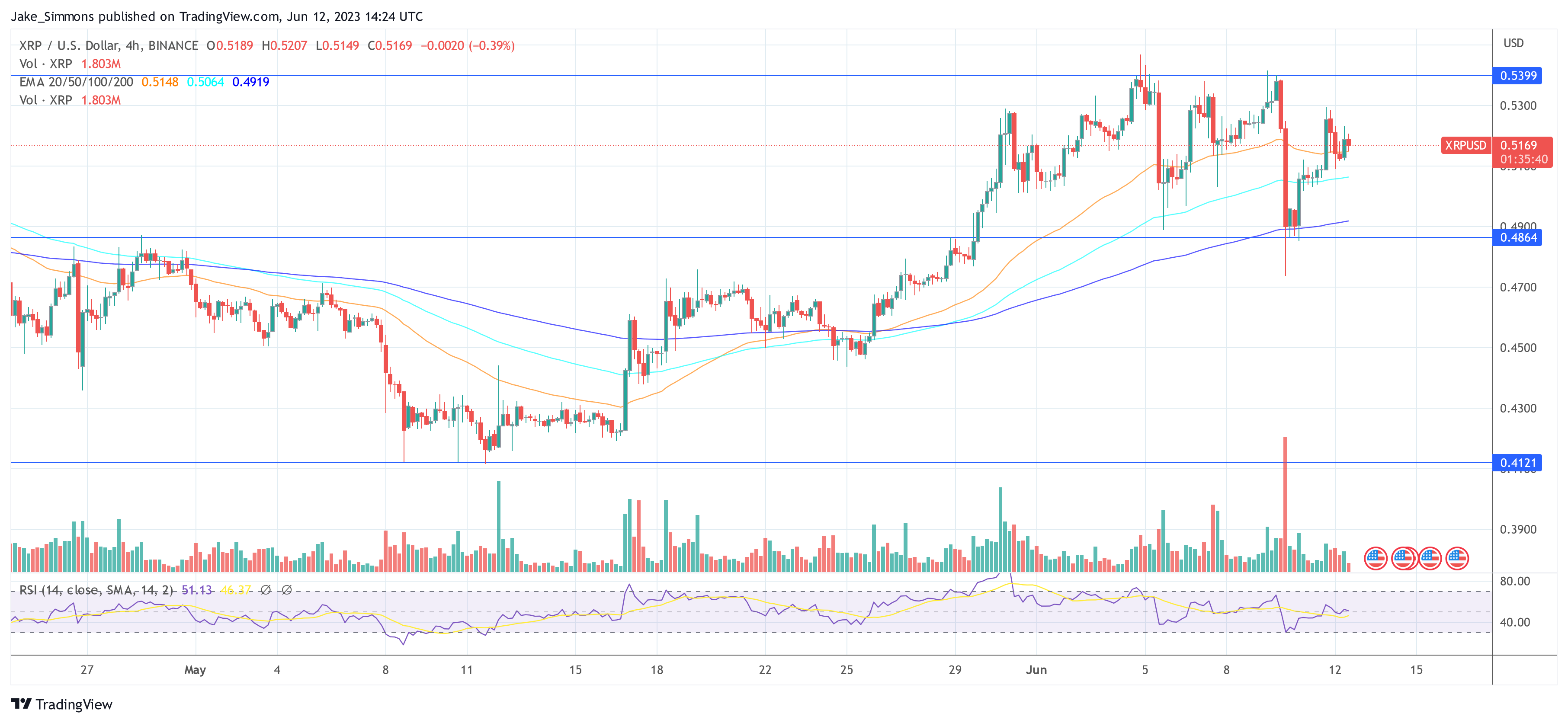 当前XRP 易手价为 0.5169 美元,在过去 24 小时内上涨 2.4%。目前,最重要的阻力位在 0.54 美元。如果 XRP 多头**这一阻力,则 3 月 29 日的年度高点 0.5850 美元可能触手可及。