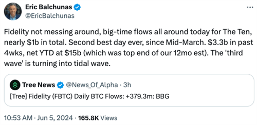 与此同时,Invesco Galaxy、富兰克林邓普顿、WisdomTree和Hashdex的比特币ETF并未看到**需求,这些发行方在6月4日均未记录到资金流入。