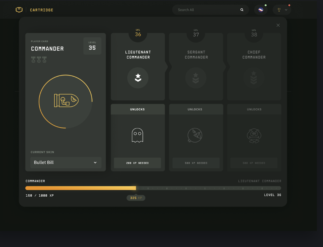 通过传统渠道与加密游戏集成的可能性不大:由于传统游戏行业对 crypto 的抵制,例如 Valve 禁止其平台上的所有 NFT 和加密货币,似乎我们必须原生构建一个等效的加密解决方案。致力于弥合这一差距的团队是加密游戏的「蒸汽」Cartridge。Cartridge 上的用户将能够浏览和启动精选的加密游戏,从任务中获得奖励并升级他们的化身,并与朋友和社区互动。特定于游戏的加密钱包为区块链游戏玩家提供了这些缺失的发现和社交功能:像 Cartridge 这样的平台充当了基础设施,将加密游戏的可组合性优势连接到应用层之外。