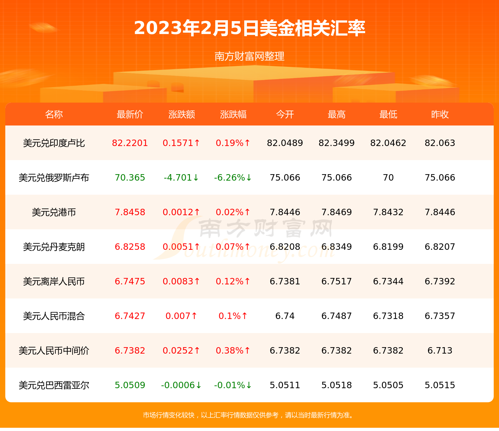 2023年2月5日美金相关汇率查询