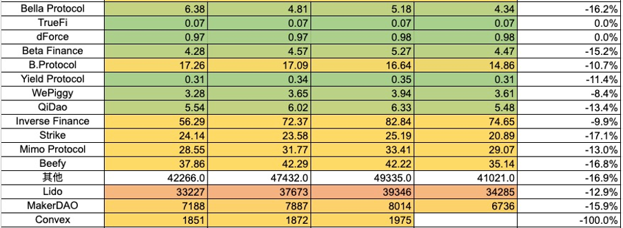 三、各链协议锁仓量情况1) ETH锁仓量情况