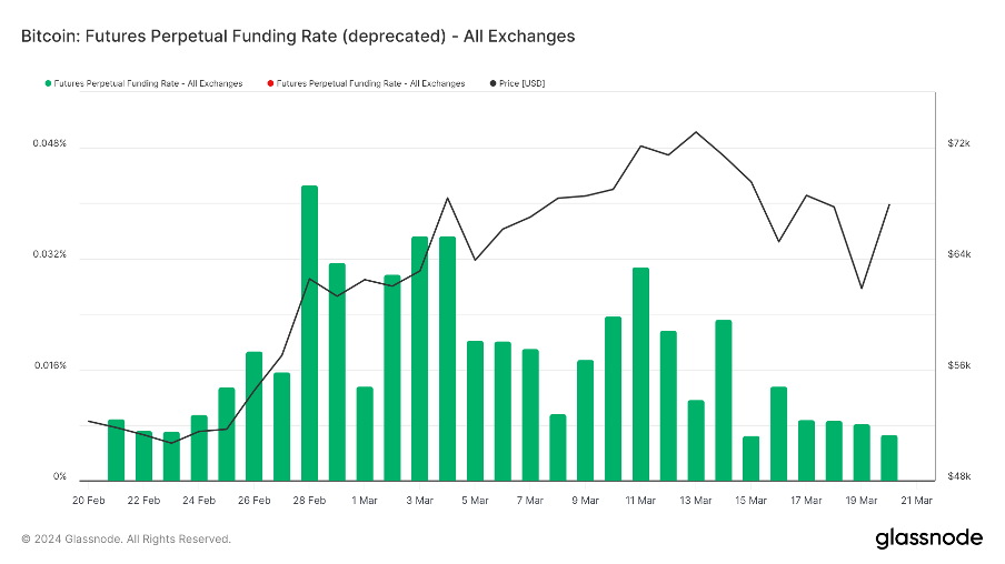 期货资金费率:本周费率恢复正常水平。费率0.05-0.1%,多头杠杆较多,是市场短期顶部;费率-0.1-0%,空头杠杆较多,是市场短期底部。