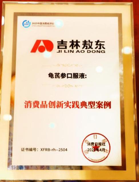 在近日举办的“2025**消费经济论坛”上,敦化市**企业吉林敖东延边药业股份有限公司以“道地性药材”、“全过程合规”、“数智化制造”为发展核心,聚焦“中成药、配方颗粒、中药材(饮片”三大业务板块,使其核心产品龟芪参口服液入选“消费品创新实践典型案例”,企业获评“医药产业高质量发展案例”。