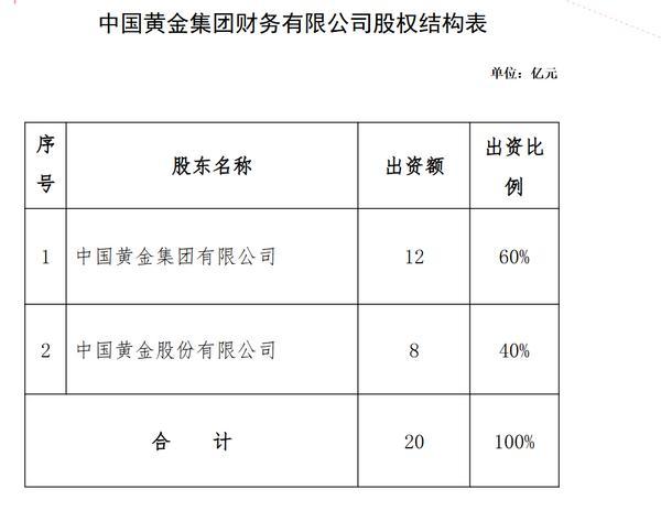上述增加注册资本并调整股权结构后,**黄金集团财务公司的股东构成、出资金额及出资比例如下: