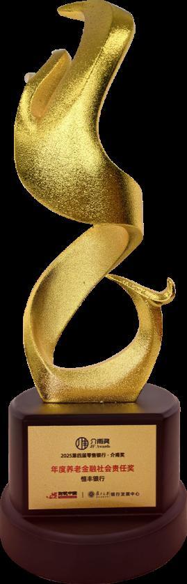 近日,第四届零售银行论坛暨“介甫奖”颁奖典礼在浙江杭州举办,恒丰银行凭借在养老金融服务领域的体系化创新与社会责任实践,摘得“年度养老金融社会责任奖”。