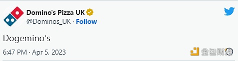 多米诺披萨(Domino's Pizza)英国分公司在官推上发布了狗狗币相关推文“狗米诺(Dogemino)”,据悉此前其推特账户的个人资料图片中也添加了狗狗币(DOGE)图片,但目前尚不清楚多米诺披萨英国分公司是否可以接受DOGE**购买披萨。