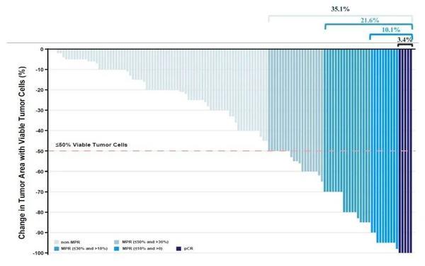 主要研究终点为研究者评估的EFS(根据RECIST v1.1,关键次要终点为主要病理缓解(MPR,定义为残留肿瘤活性细胞比例≤50%率和OS,其他次要终点包括R0切除率、**病理缓解(pCR率、无病生存期(DFS、盲态独立评审委员会(BIRC评估的EFS、安全性等。