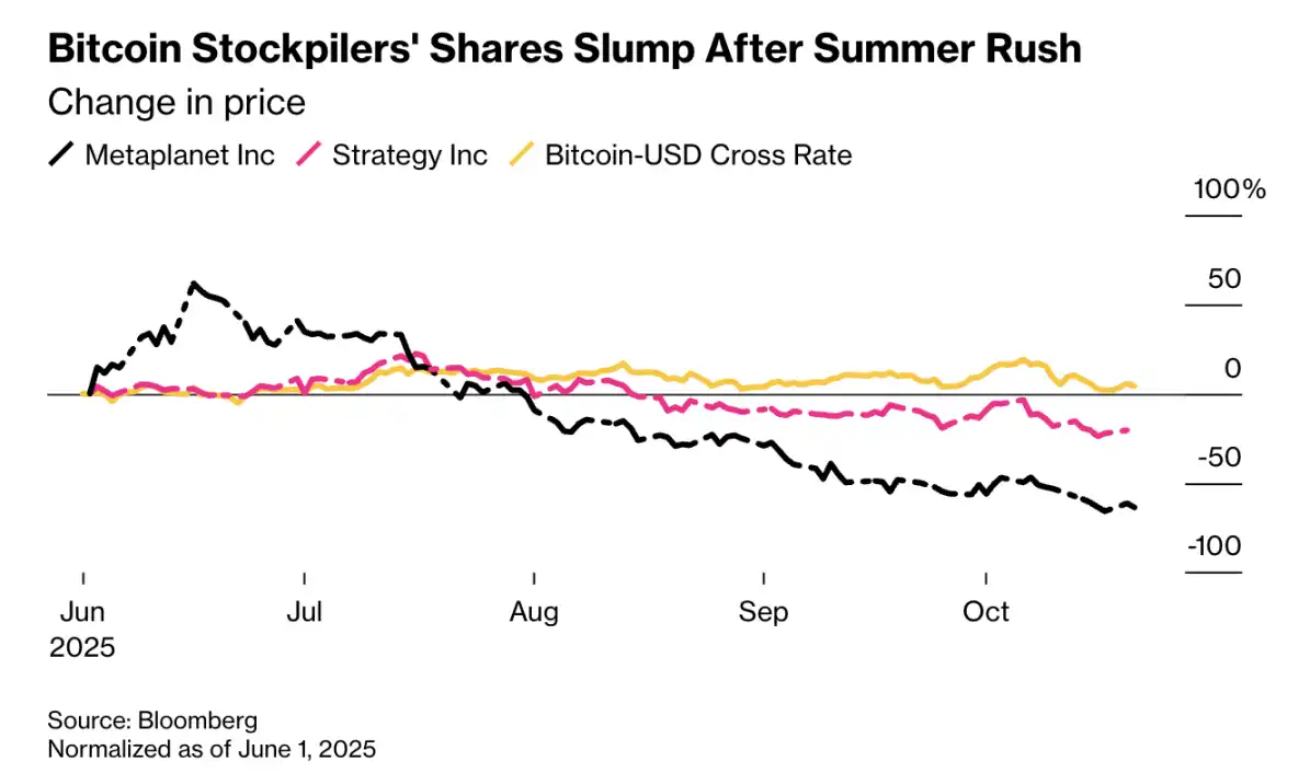 最近,数字资产财库公司(DAT)的购入速度放缓,其股价也出现下滑,这与整个加密市场的急剧抛售同步。据新加坡 10X Research 最近的一份报告估算,散户投资者在 DAT 交易中已损失约 170 亿美元。