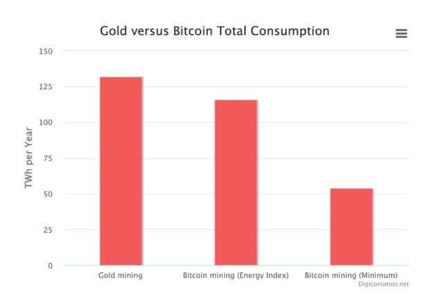 根据这个图表,可以确定黄金开采比比特币开采需要更多的能量。