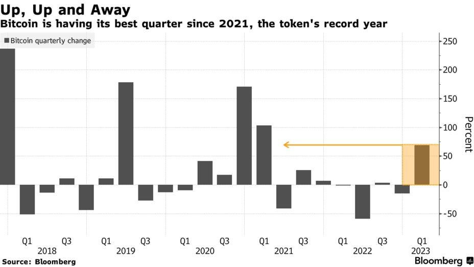 进入2023年之后,比特币的表现惊艳,创下自2021年初以来季度涨幅**记录。一些分析师认为,比特币已经成为对冲美国和欧洲银行业困境的工具,加上预期实施的货币量化宽松政策,比特币将会成为应对当前经济问题的**解决方案。