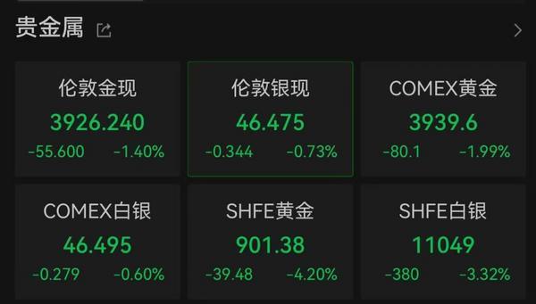 10月28日,黄金价格继续下行,现货黄金在短暂收复4000美元关口后重返跌势,一度跌破3900美元/盎司,低见3886.199美元/盎司。截至发稿,伦敦金现报3926.24美元/盎司,下跌1.4%;COMEX黄金报3939.6/盎司,下跌1.99%。