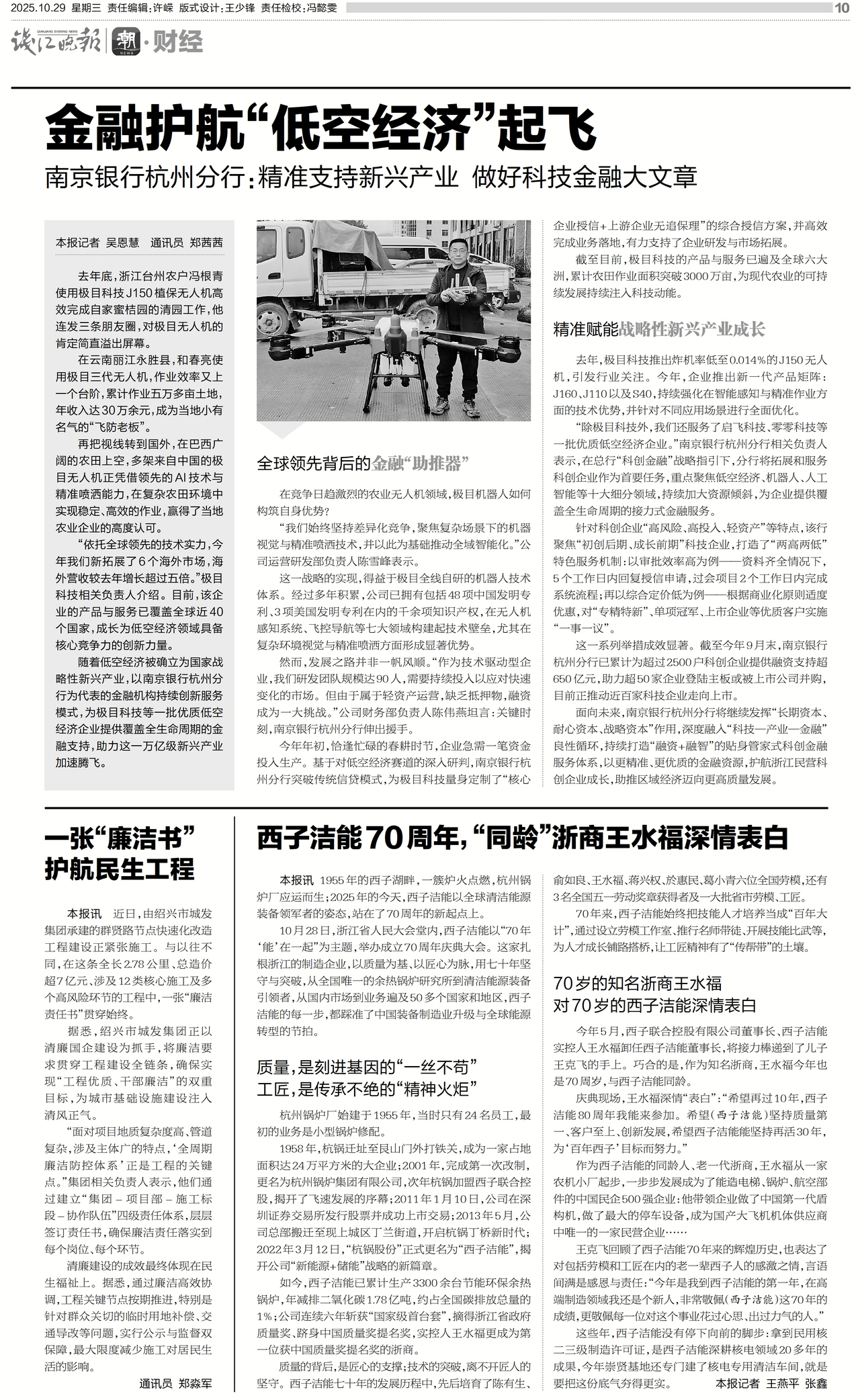 金融护航“低空经济”起飞 南京银行杭州分行:精准支持新兴产业 做好科技金融大文章