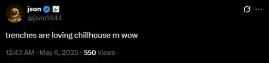 Chillhouse 的开局**可以称得上顺利。**诞生后的不到一周,就曾经突破 1000 万美元市值。现在已经作为 pump.fun **内容官的 @json1444,在 Chillhouse 诞生的首周就提到了 Chillhouse。
