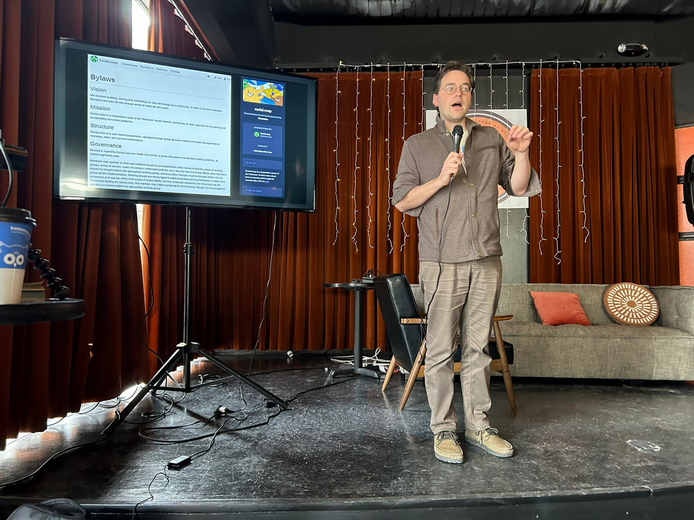 OPOLIS可以方便地向数字游民发放工资,交社保医保。它的主导人之一John Paller也正是ETH Denver的创始人。ETH Denver背后的组织Spork DAO,是一个Co-op(合作社)。同时,来自科罗拉多大学博尔德分校的教授Nathan Schneider也是这种理念的拥护者。他在Web3 Social House(Mask Network 筹办)分享了一个 Mastodon实例Social.coop,用户必须付费才能成为成员。“你如果不在经济上进行贡献、直接免费使用某个产品,你就会沦为这个产品的一部分”。
