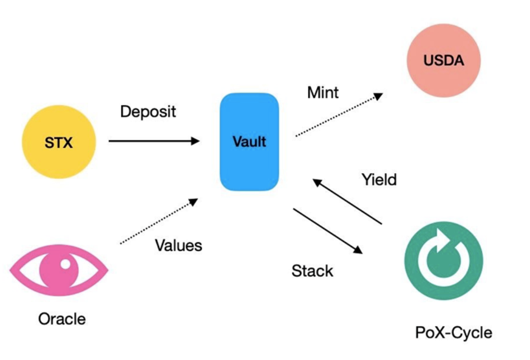 Arkadiko平台的主要应用是抵押资产铸造平台的USDA稳定币,模式与MakerDAO类似,用户在Arkadiko的Vault中存入STX,通过超额抵押的方式,铸造软锚定于美元的稳定币USDA,存入其中的STX还可以依靠Stacks的PoX机制获得收益。除此之外,用户还可以使用STX**作为交易和支付费用的工具,并通过抵押STX**来获得借款,Arkadiko的借贷利率较低,对用户而言非常有吸引力。另外,Arkadiko 还提供了流动性池、稳定币交易和收益农场等功能,让用户可以参与到更多的DeFi产品和服务中。同时,Arkadiko的开发团队致力于提供更多的创新性DeFi产品和服务,为用户提供更好的金融体验。