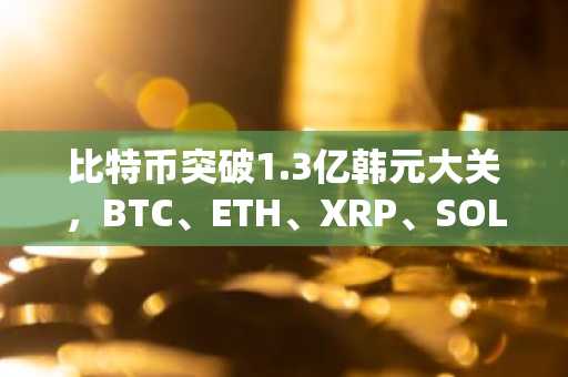 比特币突破1.3亿韩元大关,BTC、ETH、XRP、SOL集体飙升