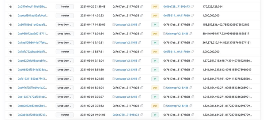 根据链上数据,我们发现这15个地址可能属于同一个人,因为他们在2021年4月21日从同一个地址“0x7617”收到了大量的SHIB。
