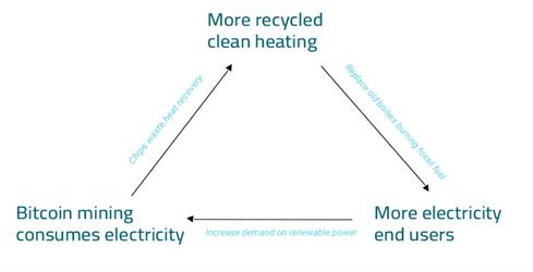 在挖矿的时候,SAI.TECH会通过冷却液在冷却芯片的同时,对采矿途中产生的余热进行捕捉,90%的余热将被回收至名为CAB的可再生能源锅炉,进而满足住宅、商业、工业和农业场景的供暖需求。利用可再生能源锅炉代替化石能源锅炉,在保证客户利润率的情况下,进一步减少供暖过程中的碳排放。