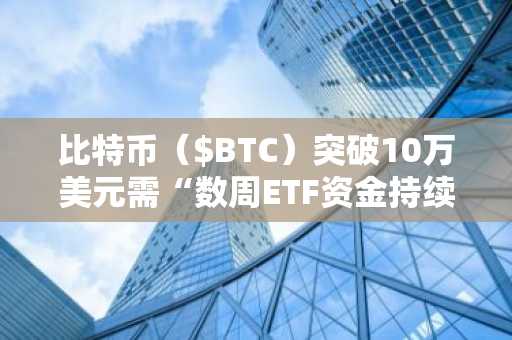 比特币($BTC)突破10万美元需“数周ETF资金持续流入”