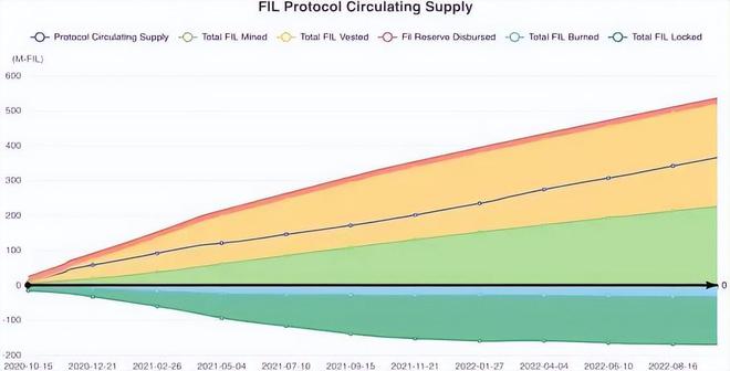 简单来说,铸造,归属,锁定和燃烧有助于流通供应中**的净流入或流出。下面是自主网推出以来Filecoin**供应的演变。