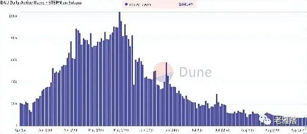 StepN 在 Solana上的日活跃地址数,从6月的10万降到现在6千,降幅超过90%。