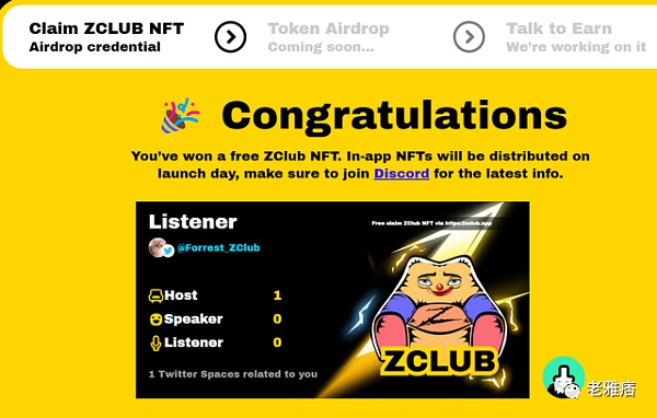 从ZClub官网上发现,他们正在进行Twitter Space 空投活动(https://zclub.app/airdrop/),只要参与过 Twitter 语音交流的用户,就可以去官网领取空投NFT,直接把 Twitter 给 DAO了。