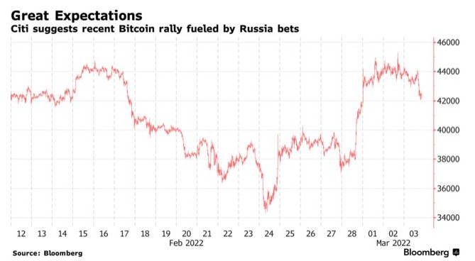 获悉,在市场预期制裁或推动俄罗斯资金流向加密货币的影响下,比特币本周早些时候一度站上45000美元,然而,在这一预期似乎被证伪,同时有报道传出乌克兰核电站被攻击后,比特币重新回落至41000美元附近。
